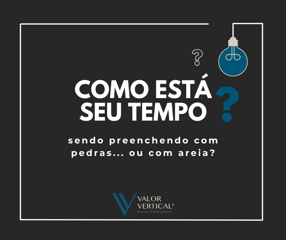 Se você começar o dia pelas “urgências” (areia), não sobrará espaço para as “prioridades” (pedras grandes).